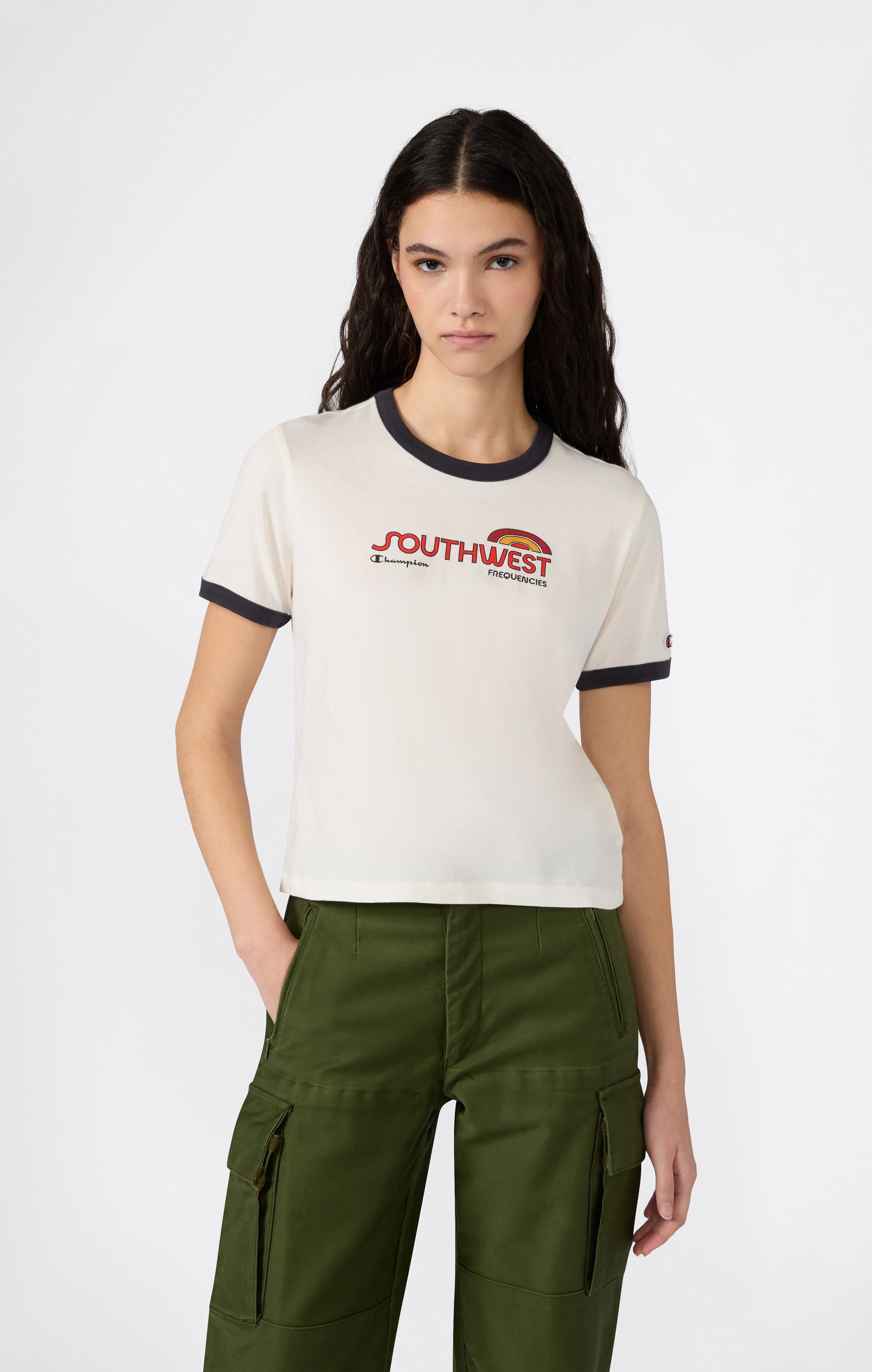 Esta playera Champion destaca por su diseño clásico con un toque retro deportivo. Su combinación de color con cuello y mangas en contraste le da un estilo tipo ringer tee que eleva cualquier look casual. Es una prenda versátil, cómoda y fácil de combinar, ideal para el día a día